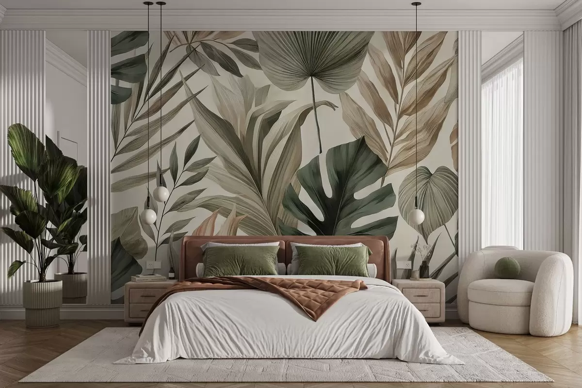 Murais de parede Grandes folhas tropicais em tons pastel delicados e contidos Nr. w02082