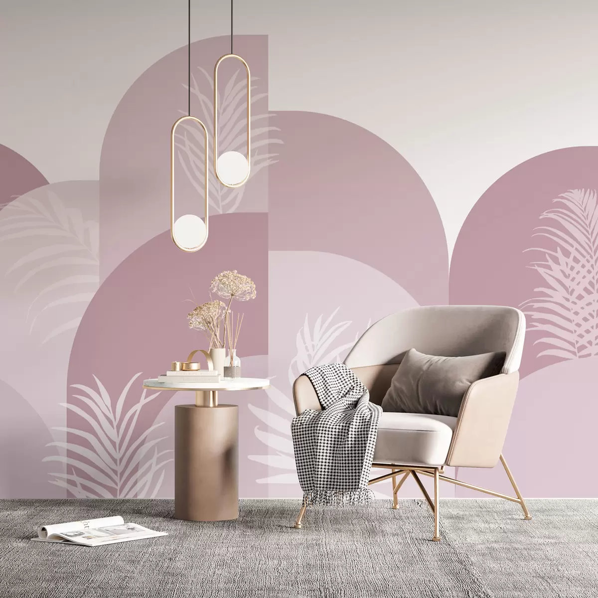 Murais de parede Arcos modernos com folhas tropicais cor-de-rosa Nr. w02101v4