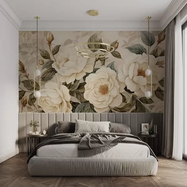Murais de parede Rosas brancas em aguarela de estilo vintage Nr. w02169