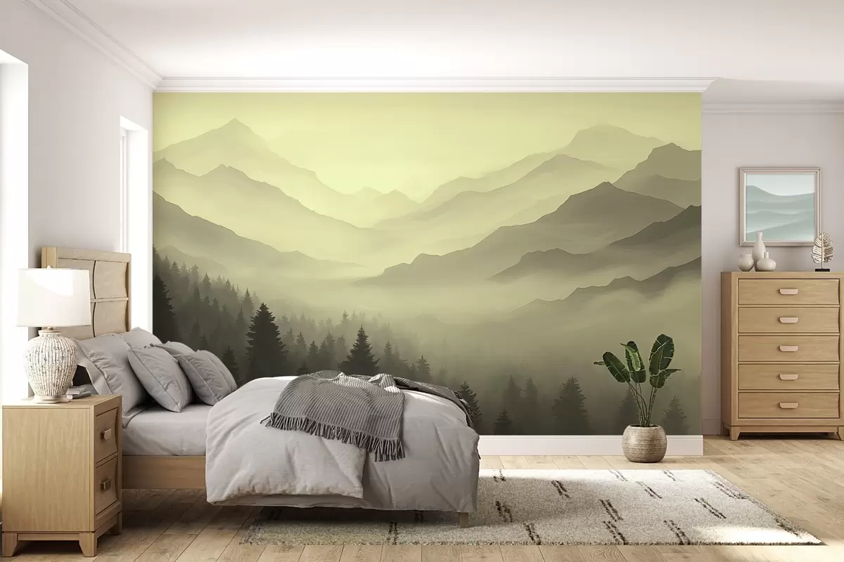 Murais de parede Floresta e montanhas em tons de verde Nr. w02186v1