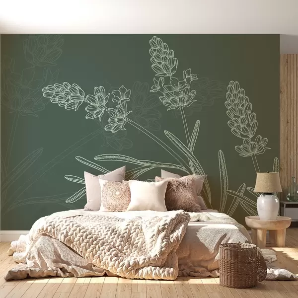 Murais de parede Lavanda linear sobre verde Nr. w02243