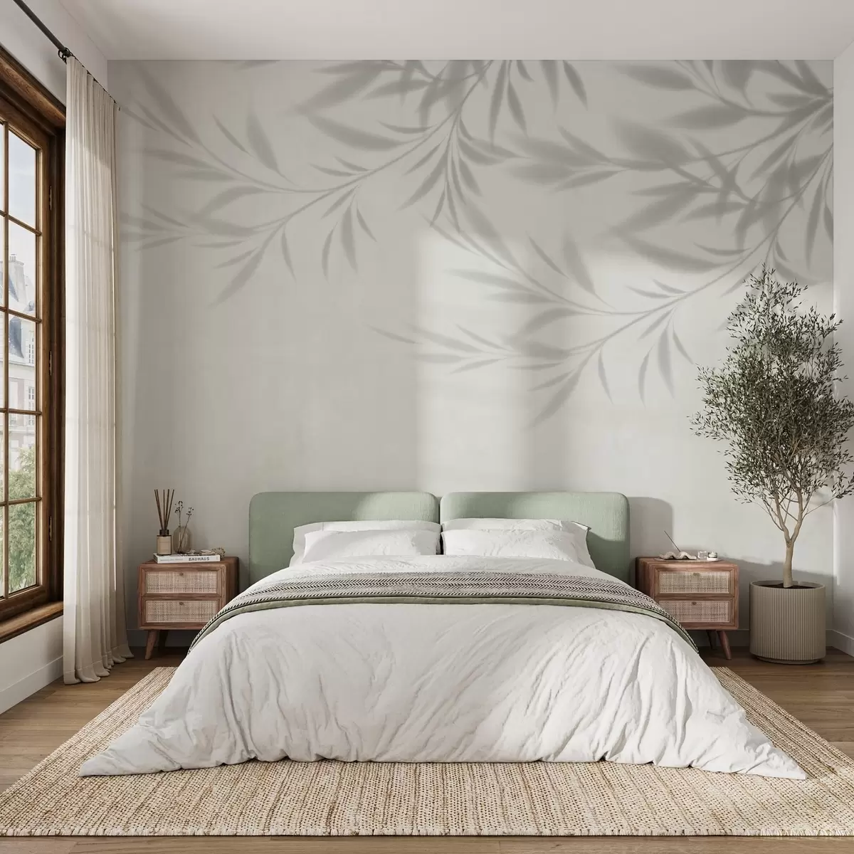 Murais de parede Sombra de ramos e folhas sobre um fundo de azeitona Nr. w02283