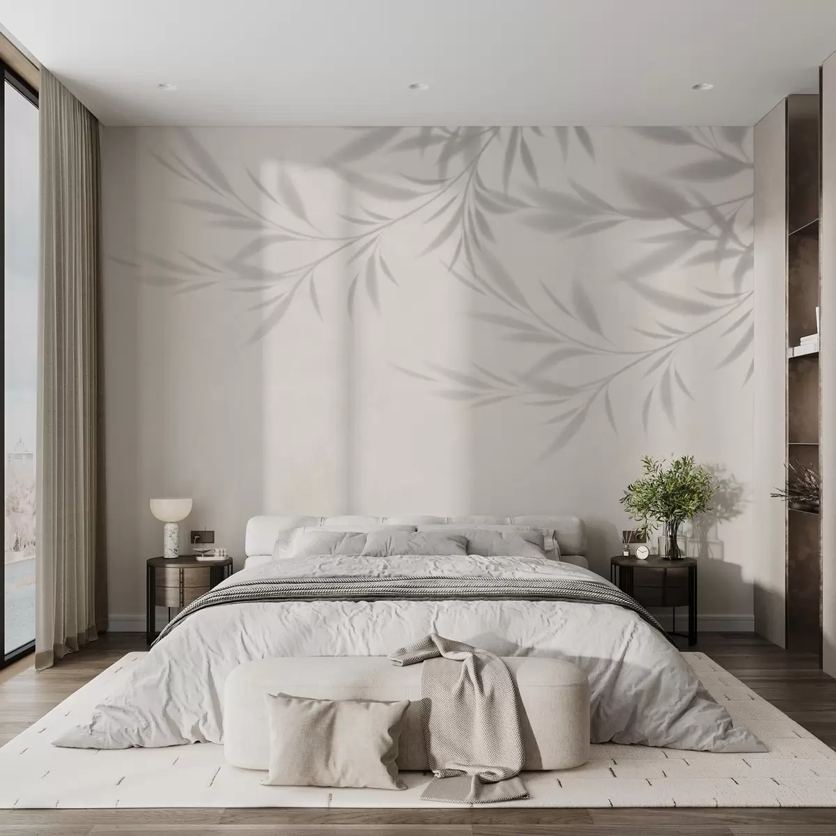 Murais de parede Sombra de ramos e folhas sobre um fundo bege Nr. w02283v1