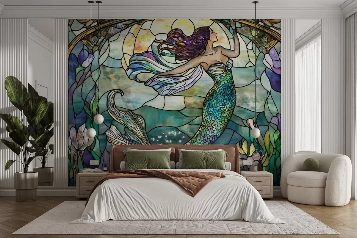 Murais de parede Papel de parede em estilo vitral com a imagem de uma sereia mágica Nr. w02286