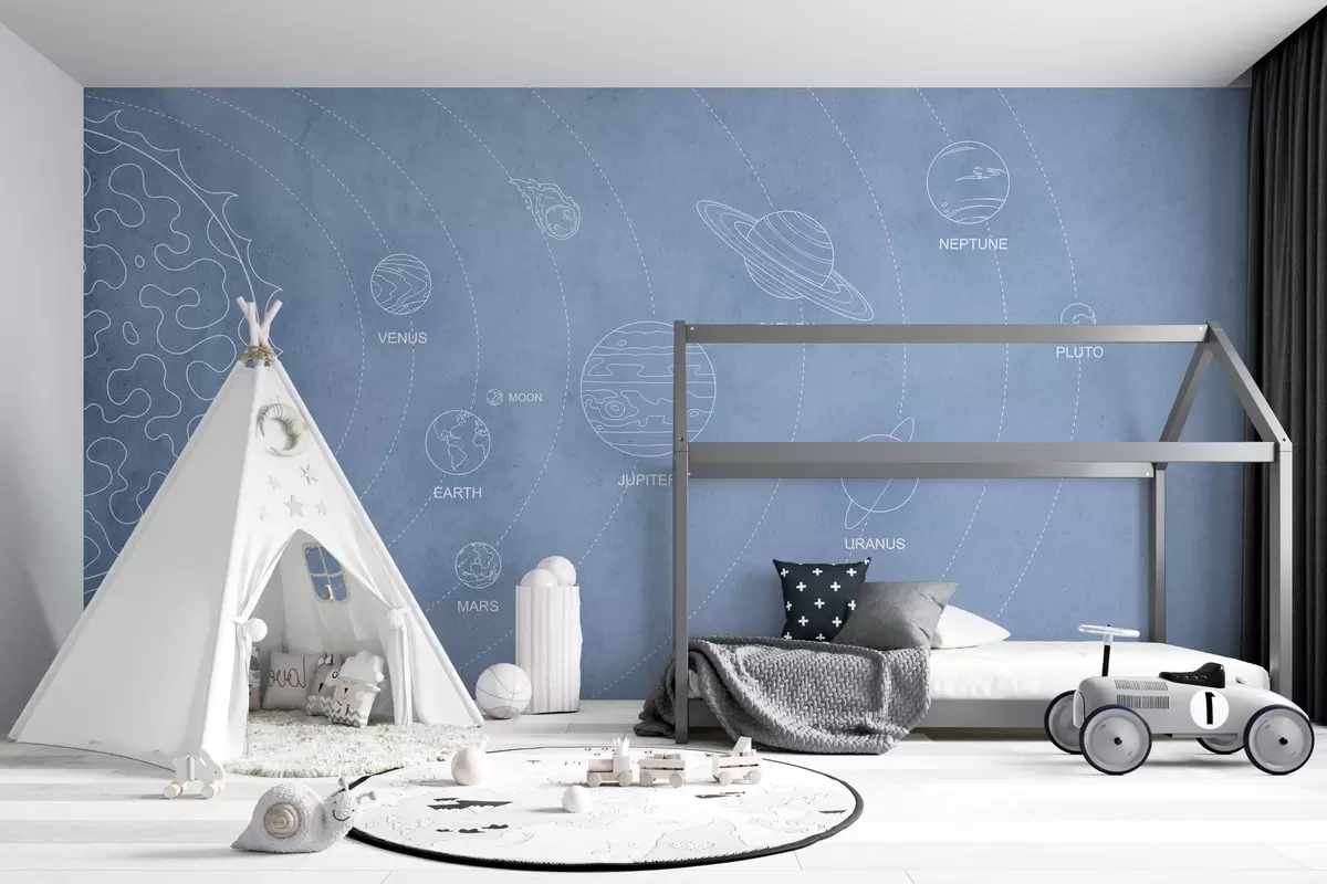 Murais de parede Sistema solar num estilo minimalista sobre um fundo azul texturado Nr. w02344v1
