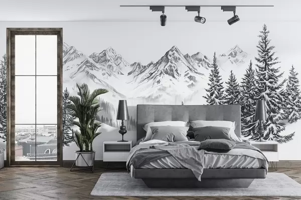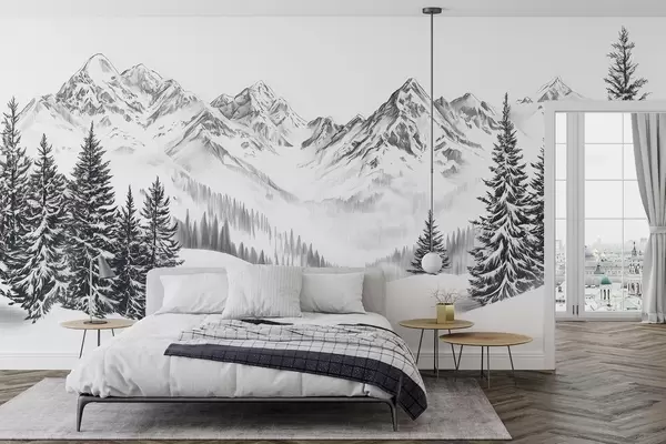 Murais de parede Montanhas alpinas na neve, estilo lápis, minimalismo Nr. w02352