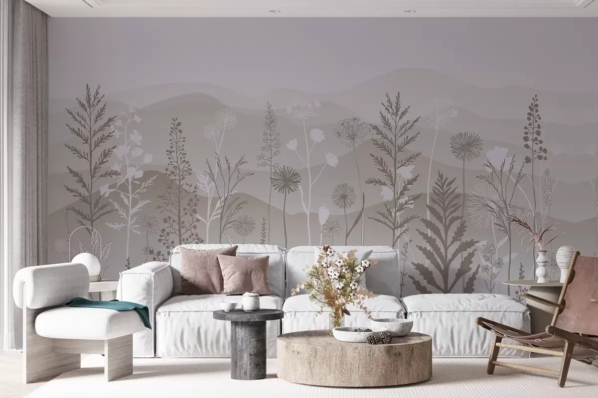 Murais de parede papel de parede de estilo ecológico, flores silvestres em tons de castanho claro Nr. w02443v1