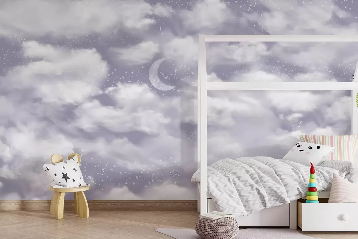 Murais de parede Céu estrelado com lua e nuvens, sonhador, etéreo, cores púrpura suaves Nr. w02515v4