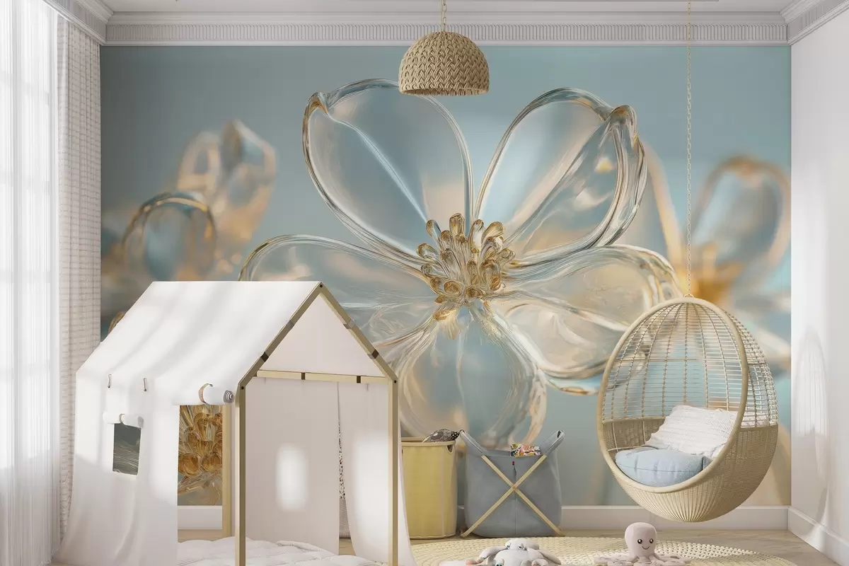Murais de parede flores grandes em vidro em tons de azul Nr. w02521