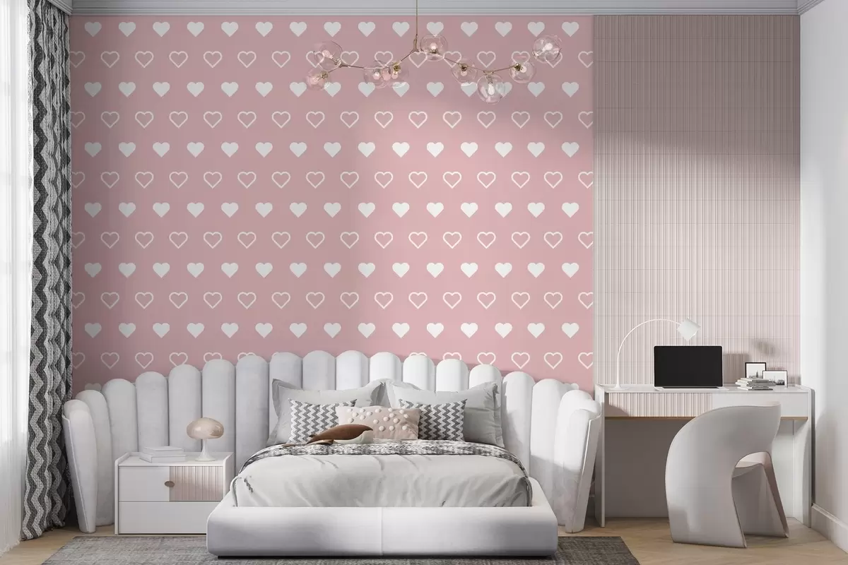 Murais de parede impressão minimalista de um coração sobre um fundo cor-de-rosa Nr. w02548