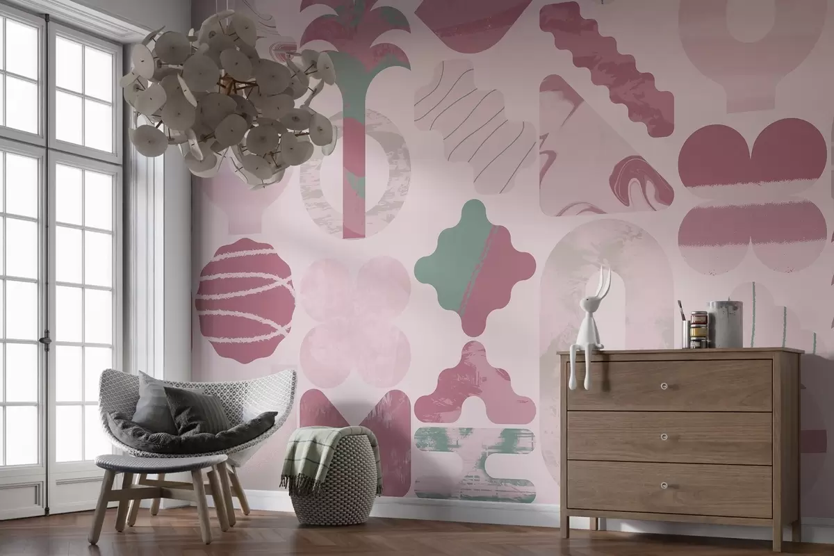 Murais de parede várias formas interessantes, geometria moderna em cores cor-de-rosa Nr. w02550