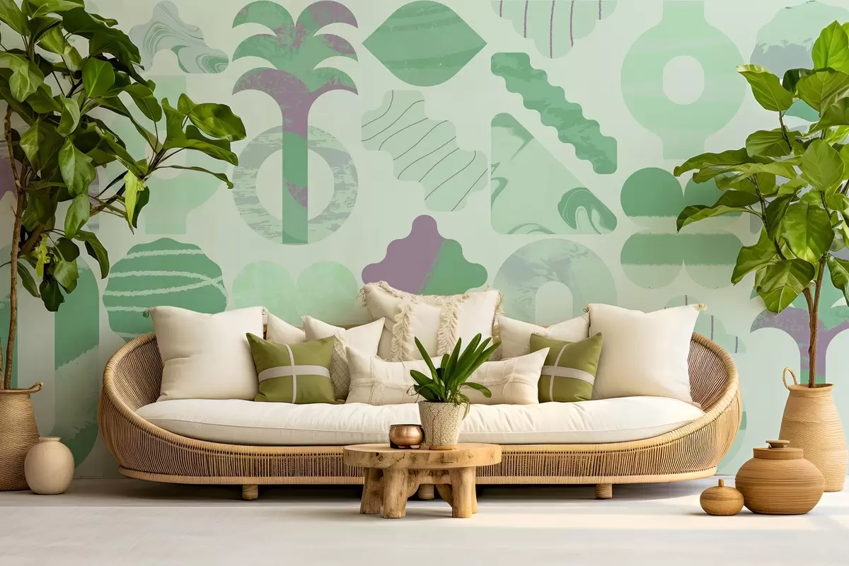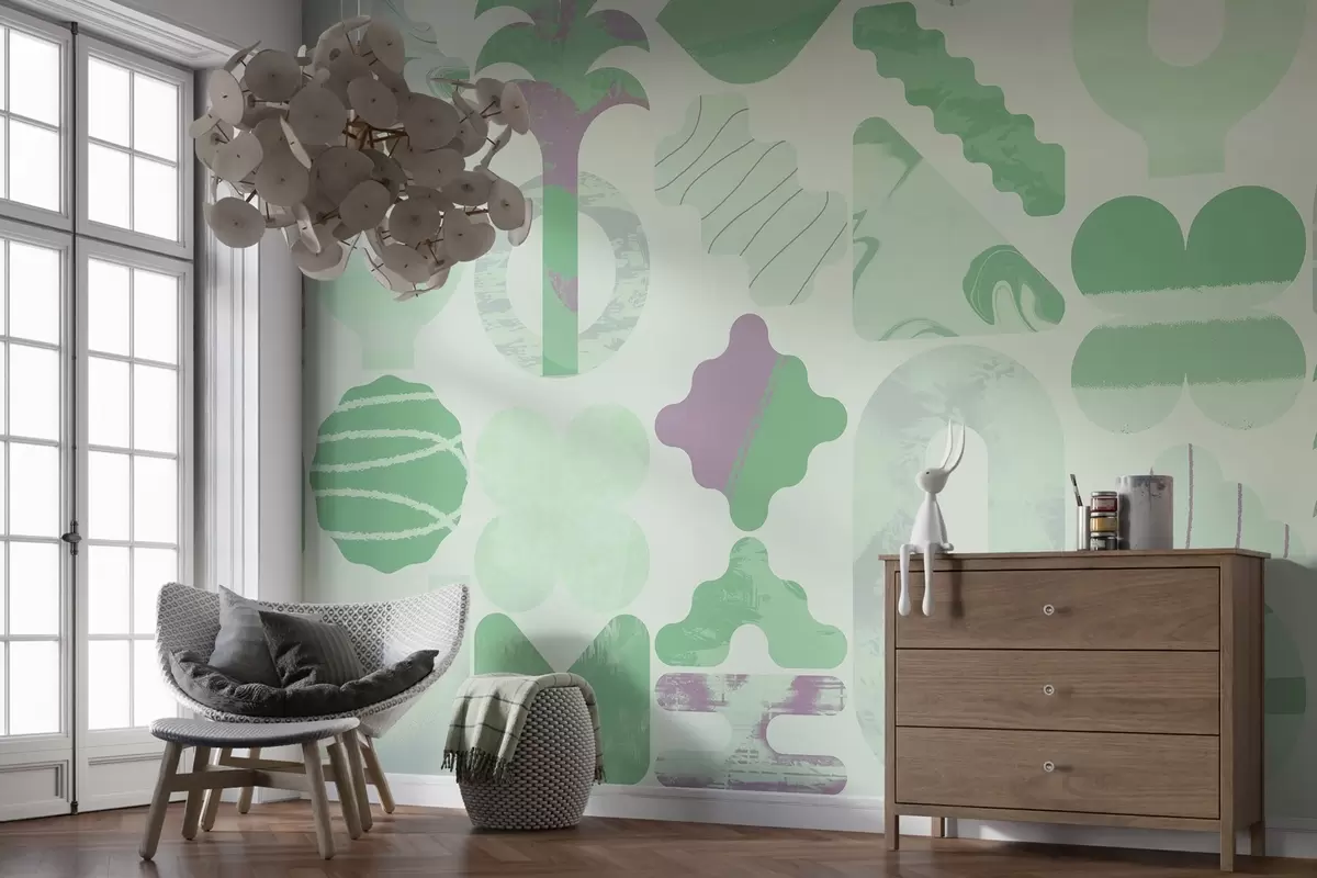 Murais de parede várias formas interessantes, geometria moderna em cores verdes Nr. w02550v2