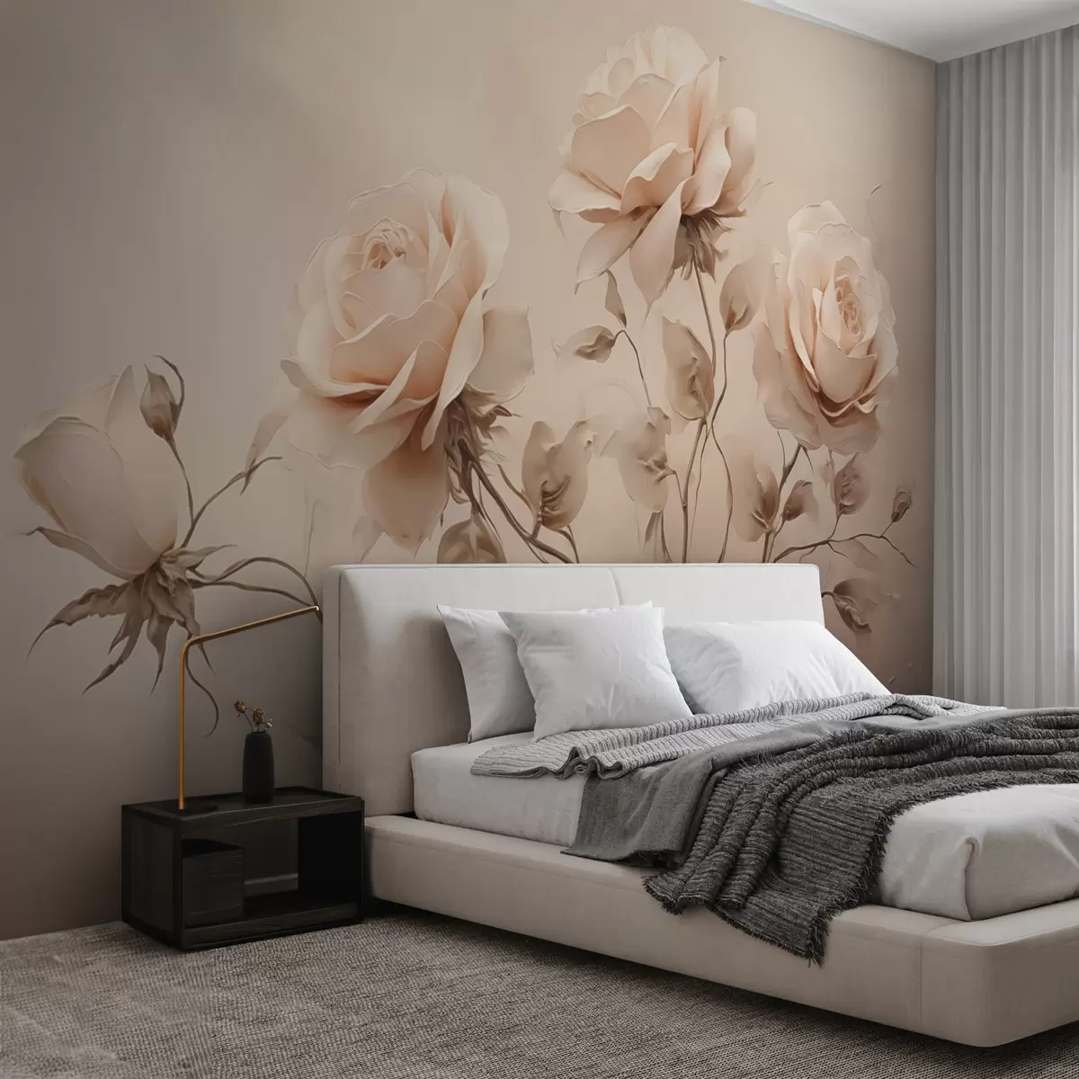Murais de parede Rosas sobre um fundo fumado imitação de pintura Nr. w02584