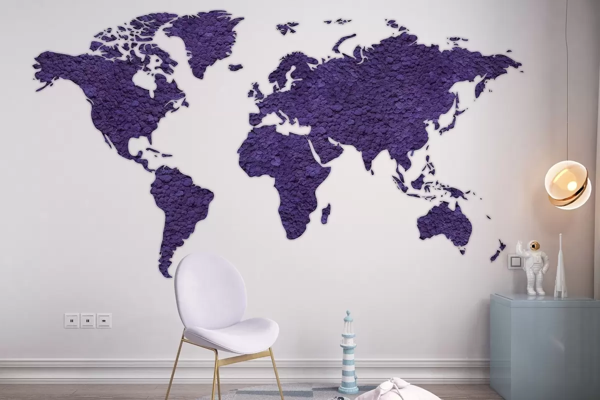Murais de parede Mapa-mundo com musgo, natureza, paleta de cores púrpura Nr. w02657v3