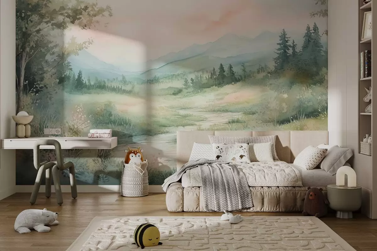 Murais de parede paisagem em aguarela com um caminho e montanhas Nr. w02764