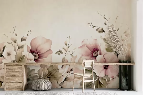 Murais de parede grandes flores pastel em secções delicadas Nr. w02779