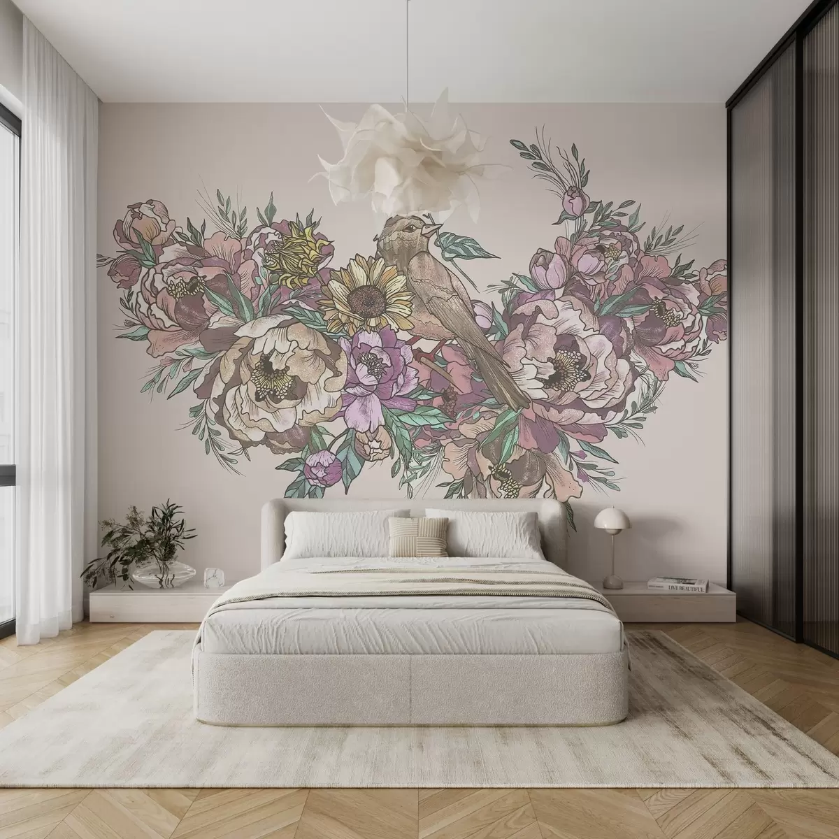 Murais de parede Ilustração vintage de pássaros e flores Nr. w02833