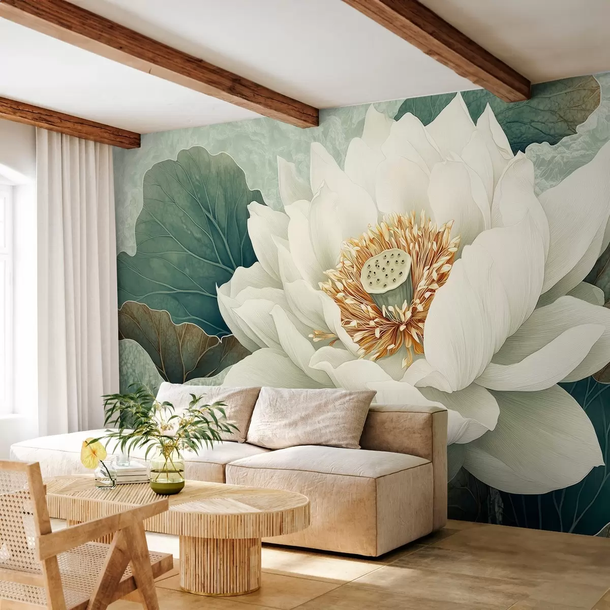 Murais de parede Nenúfar grande sobre um fundo de folhas Nr. w02905