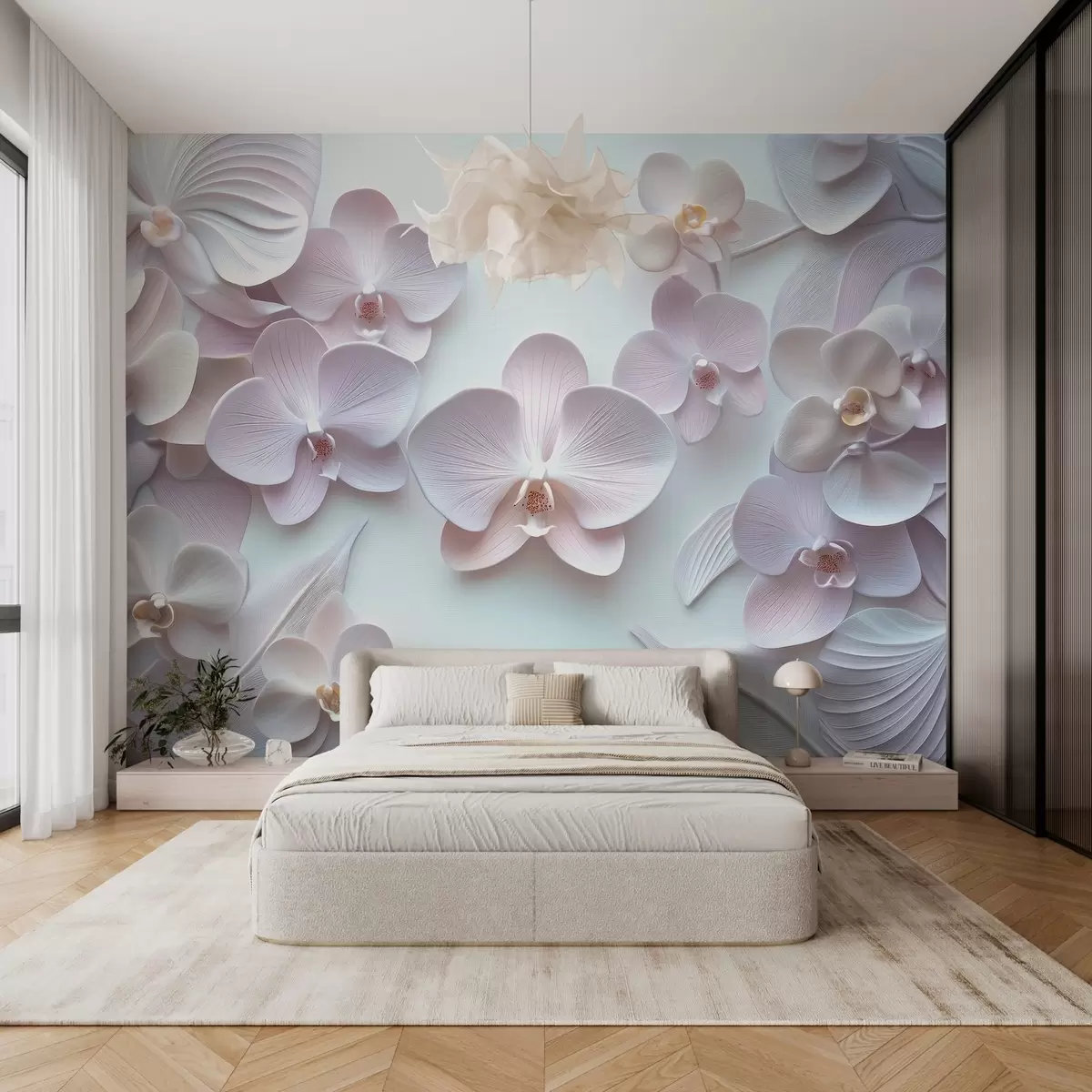 murais de parede Flores delicadas de archidia em cores claras com imitação 3D  w02912