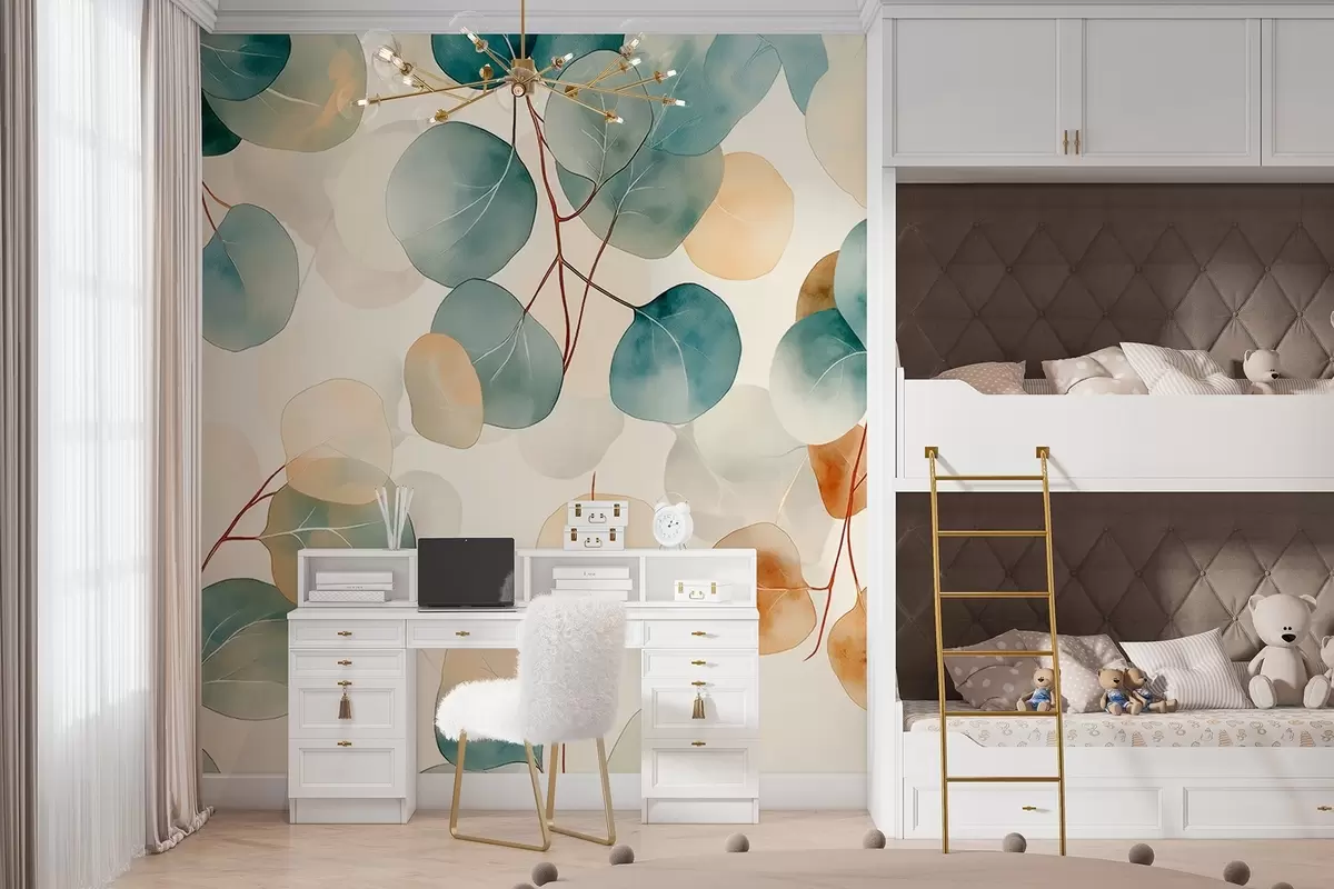 Murais de parede Desenho de eucalipto em aguarela, cores pastel suaves, floral Nr. w02938