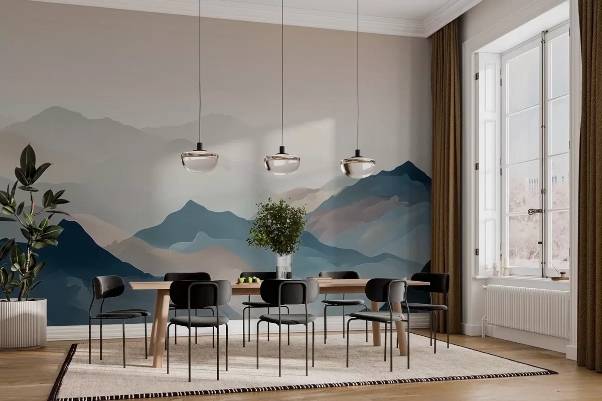 Murais de parede Paisagem de nevoeiro com montanhas Nr. w02997
