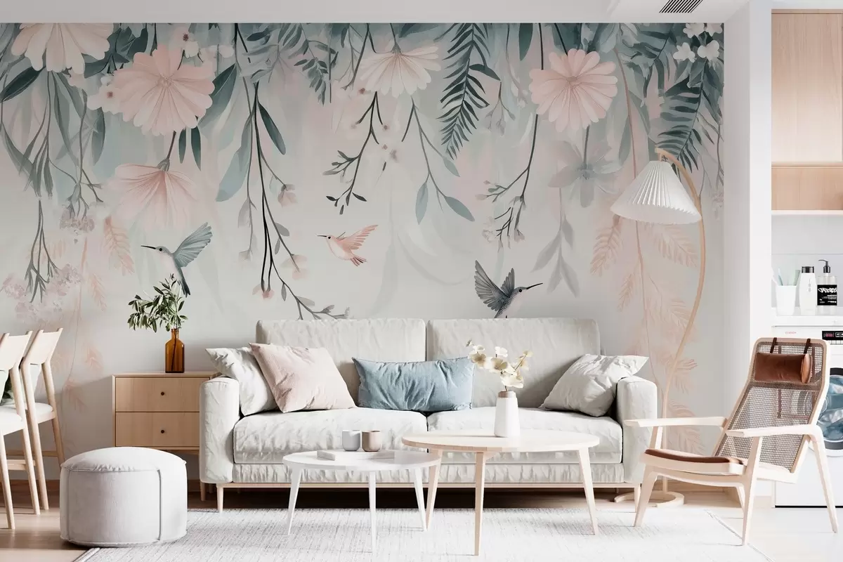 Murais de parede flores cor-de-rosa em imitação da técnica de pintura penduradas por cima Nr. w03012