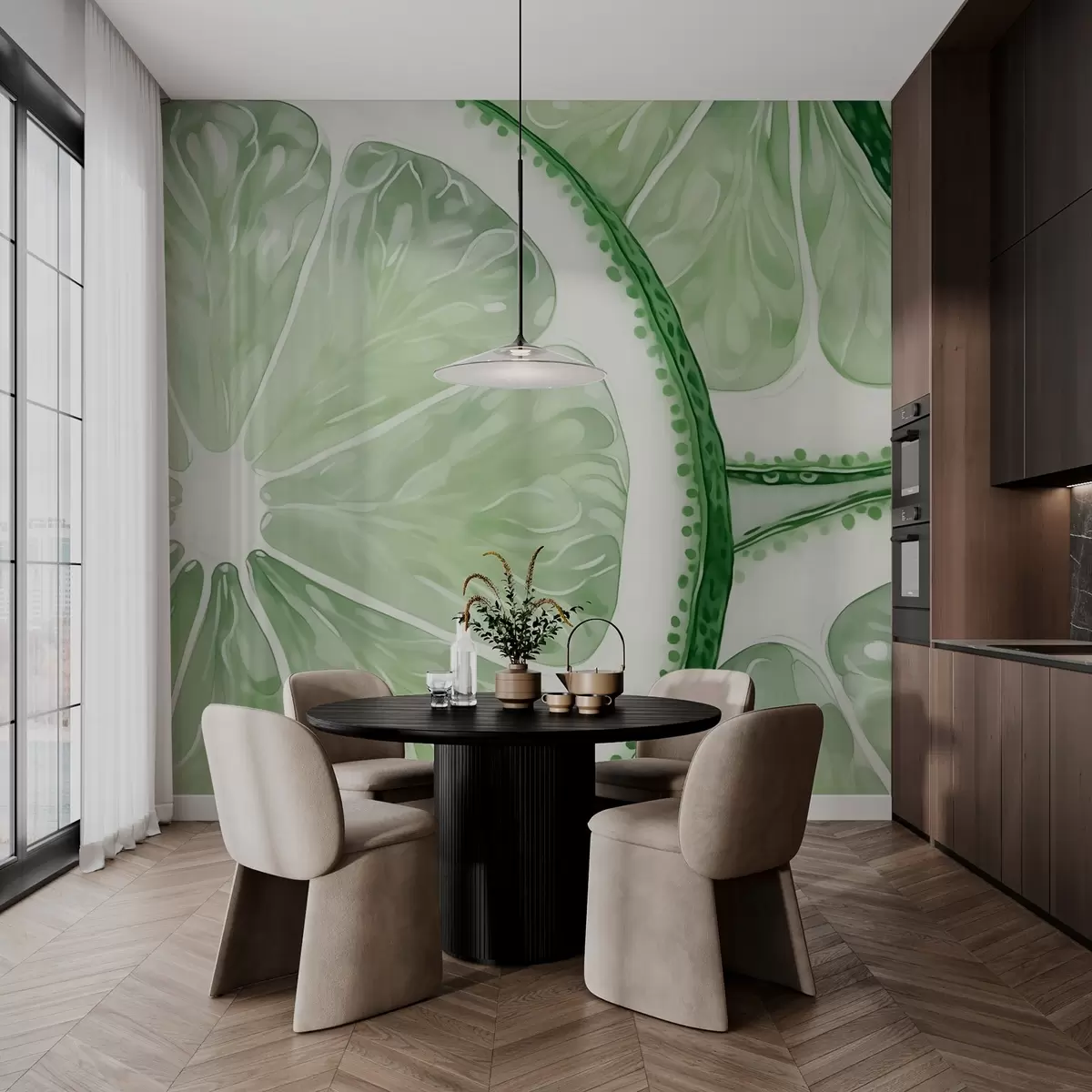 Murais de parede Círculos cítricos imitação de aguarela em tom verde Nr. w03026