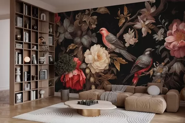 Murais de parede Pássaros e flores em tons escuros Nr. w03131