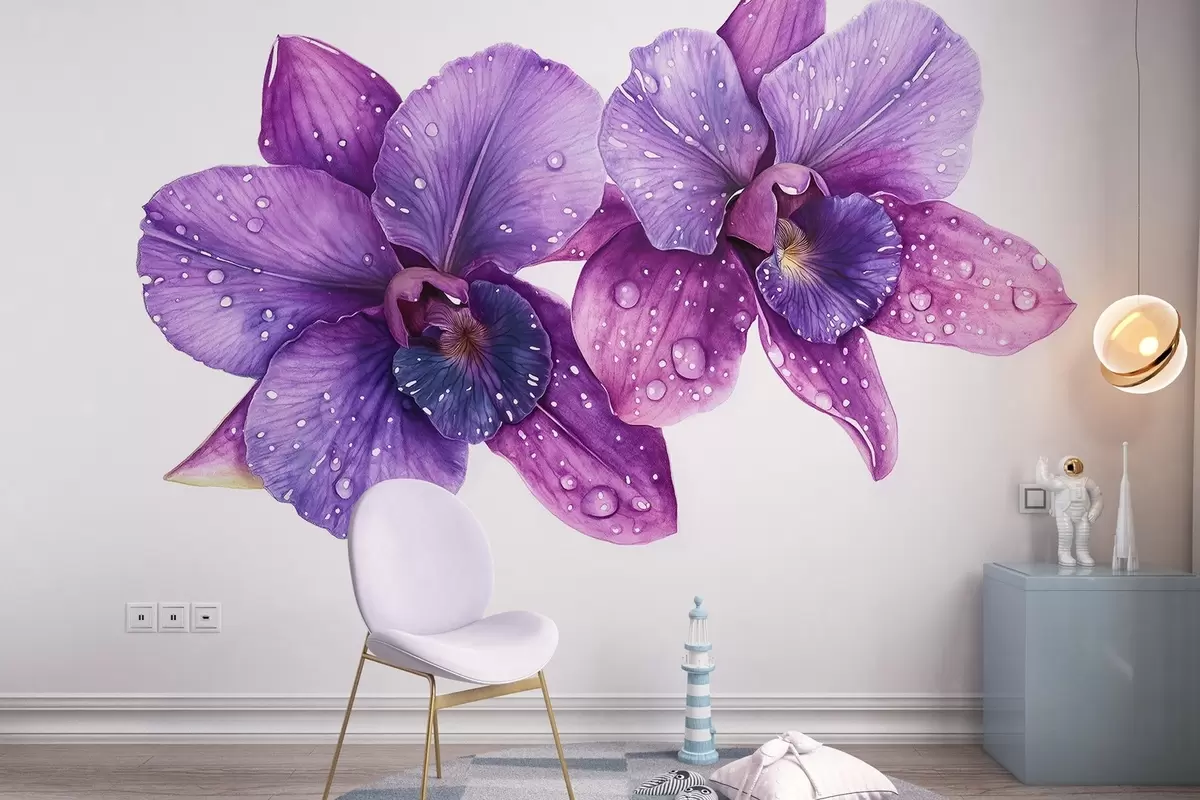 Murais de parede Lindas flores de orquídea, desenho em aguarela, cores violetas Nr. w03164