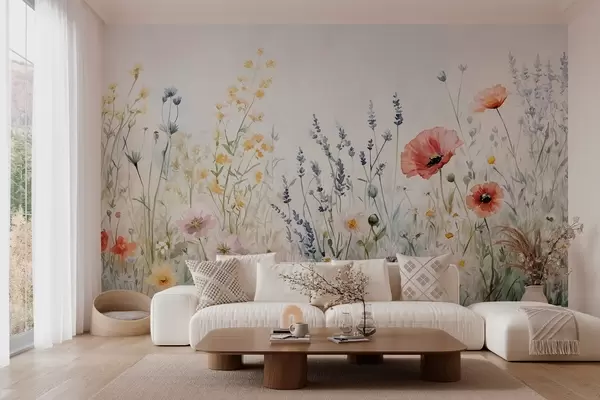Murais de parede flores silvestres e papoilas na técnica das pinceladas Nr. w03281