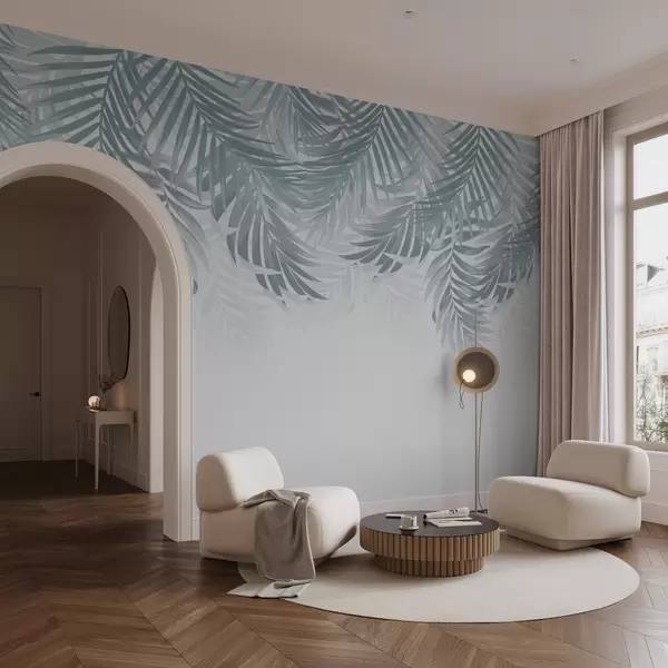 Murais de parede Folhas de palmeira turquesa vistas de cima Nr. w03294v1