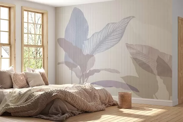 Murais de parede Ilustração botânica suave com grandes folhas translúcidas em tons pastel sobre um fundo texturado Nr. w03323