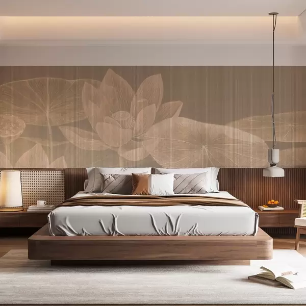 Murais de parede Ilustração elegante de lótus e lírios em tons pastel com um efeito de linho texturado, Nr. w03324v2