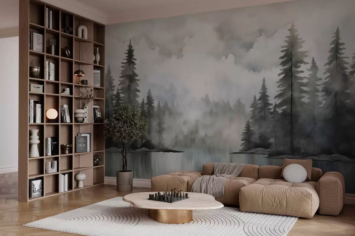 Murais de parede Floresta, lago e céu nublado em estilo aguarela Nr. w03387