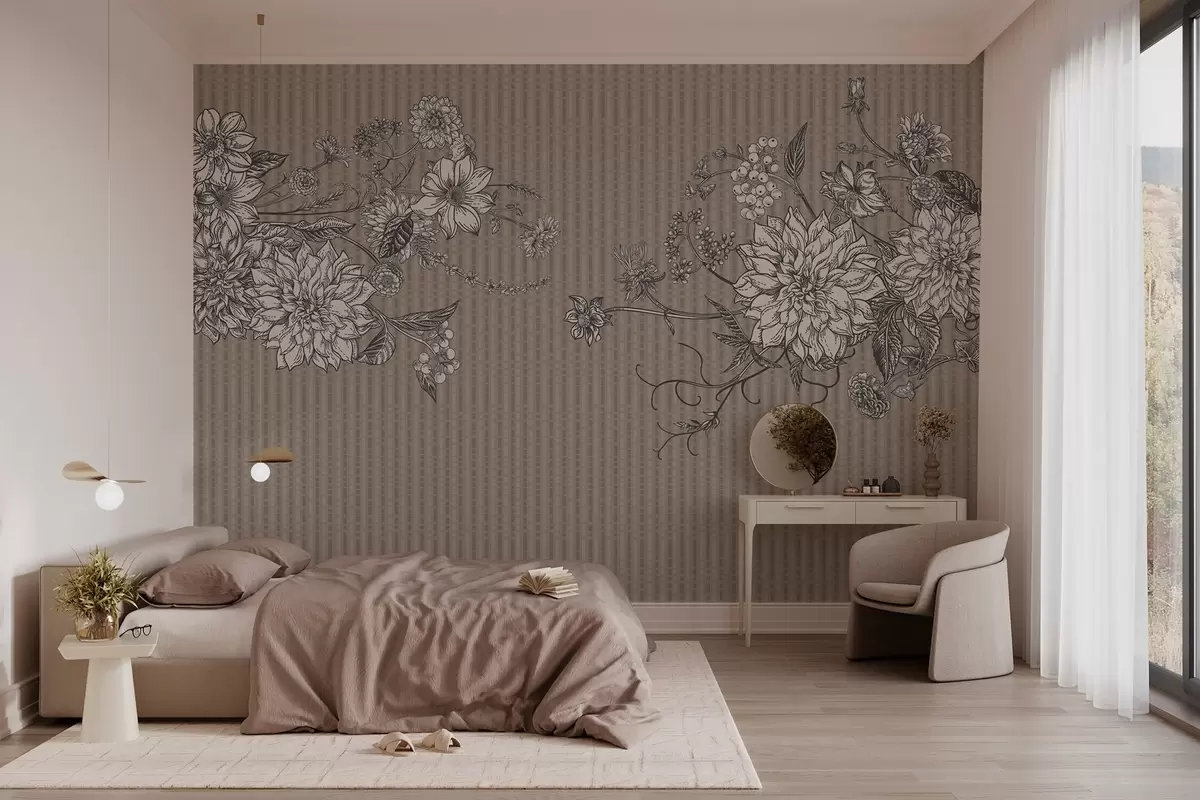 Murais de parede Flores gráficas sobre um fundo mate em tons de bege Nr. w03395