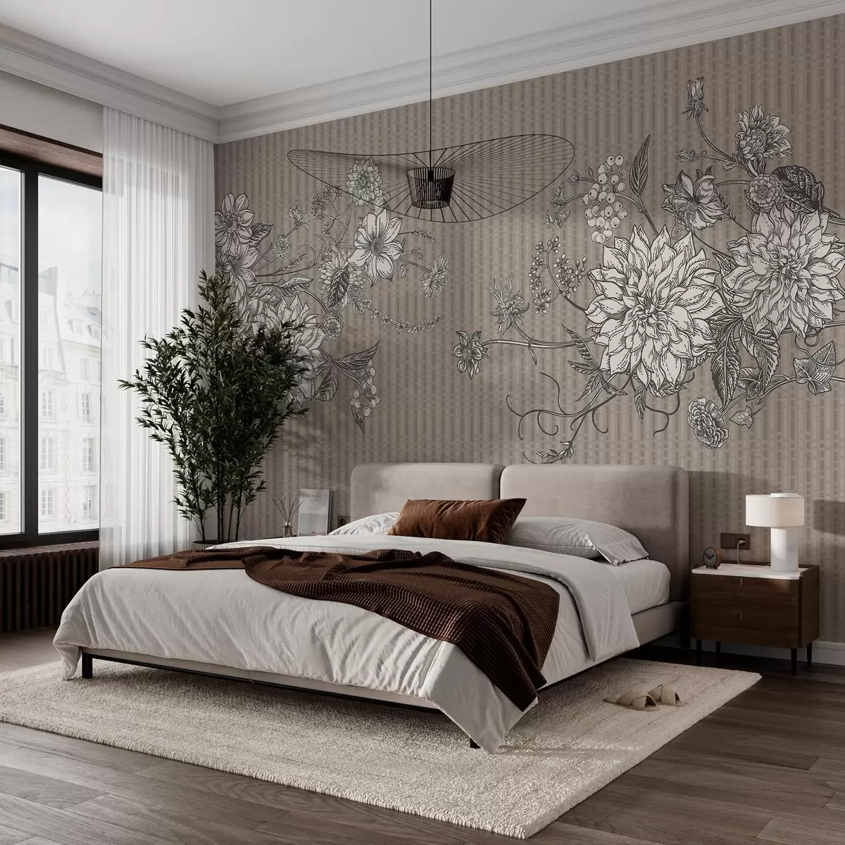 Murais de parede Flores gráficas sobre um fundo mate em tons de bege Nr. w03395