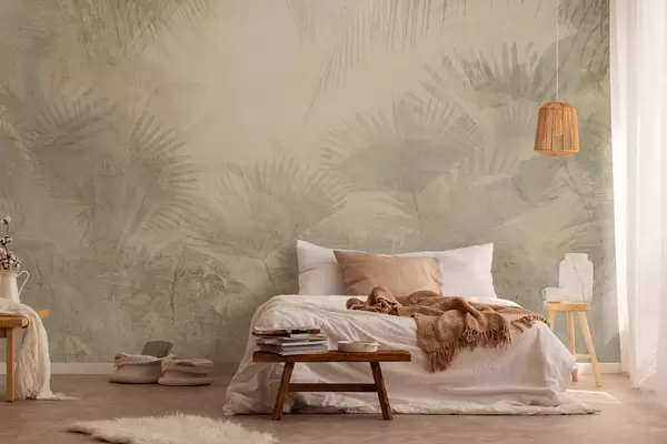 Murais de parede Papel de parede retro tropical texturado em tons de bege Nr. w03399