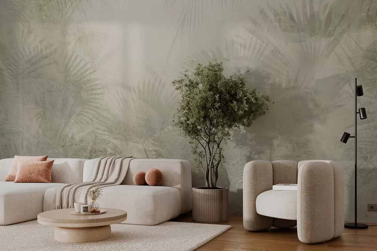Murais de parede Papel de parede retro tropical texturado em tons de bege Nr. w03399