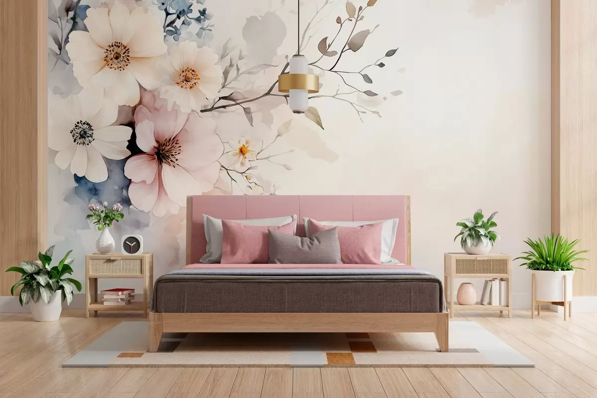 Murais de parede flores delicadas e um ramo em estilo aguarela Nr. w03400