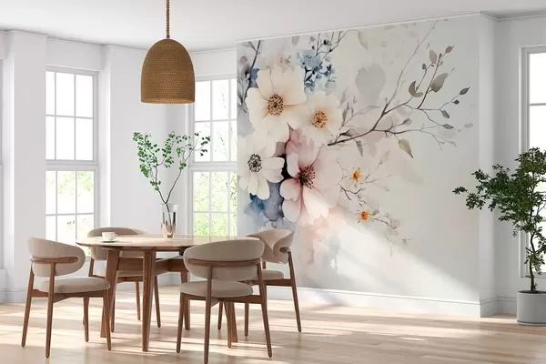 Murais de parede flores delicadas e um ramo em estilo aguarela Nr. w03400