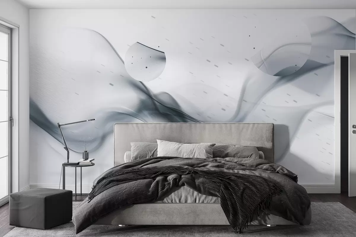 Murais de parede Abstração de ondas geométricas, estilo desfocado, gradiente, cores cinzentas Nr. w03404v3