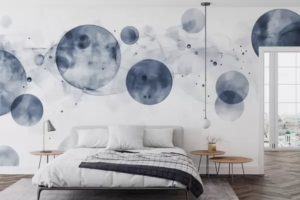 Murais de parede Círculos em estilo aguarela, abstração, etéreo, arte fluida, cores cinzentas Nr. w03405