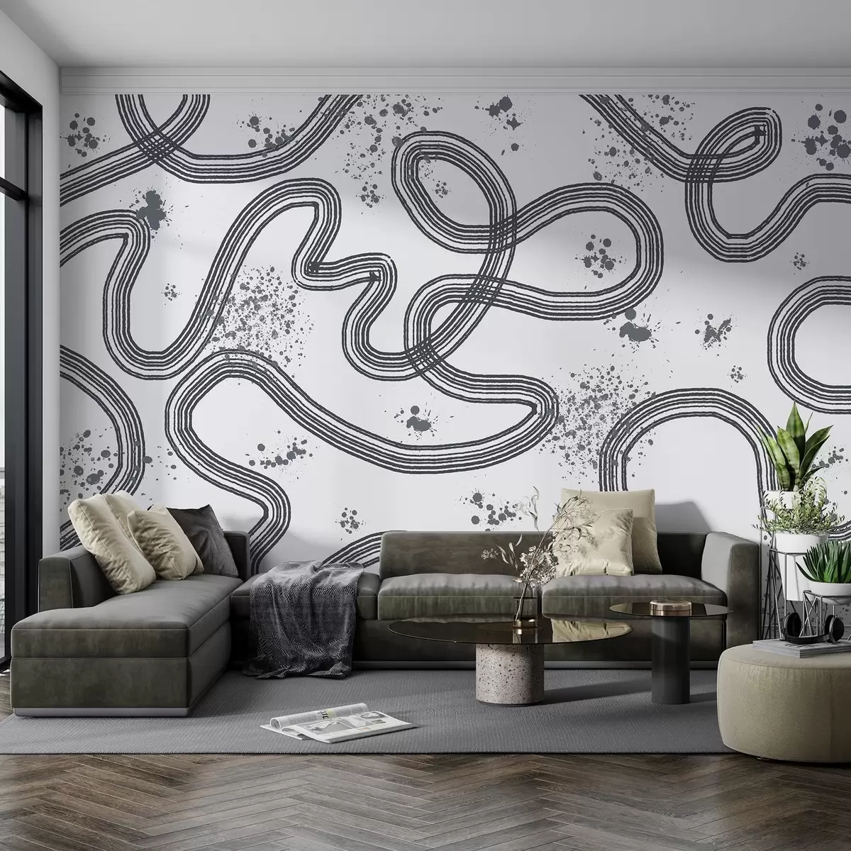 Murais de parede Desenho de linhas, salpicos de tinta, minimalismo, cor cinzenta Nr. w03408v2