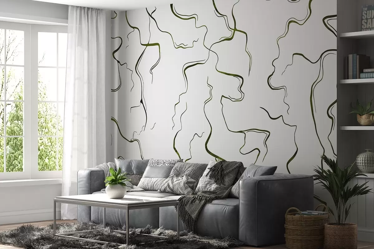 Murais de parede Linhas geométricas, estilo de tinta, abstração, cores verdes Nr. w03436