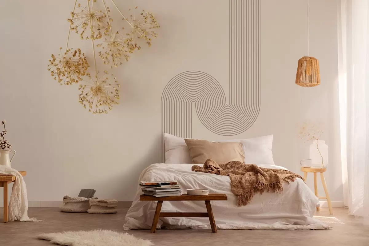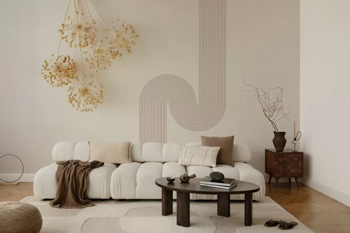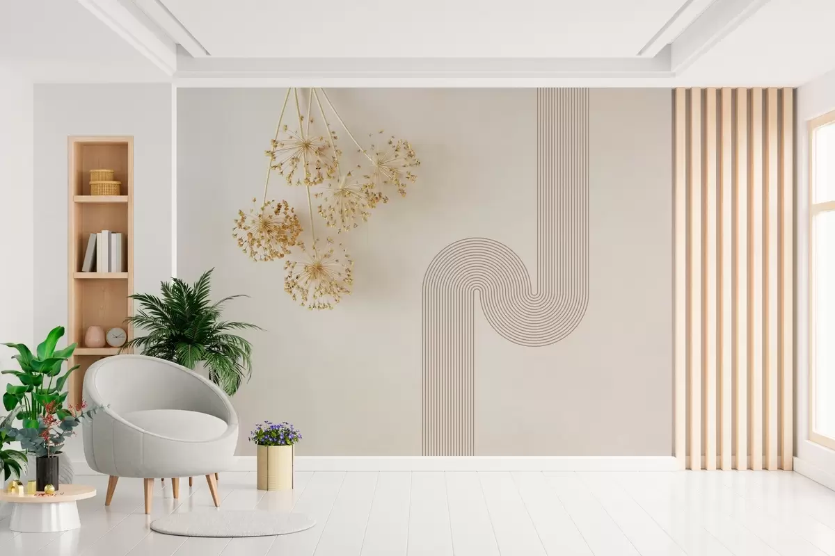 Murais de parede elegantes flores secas e linhas em tons de bege Nr. w03455
