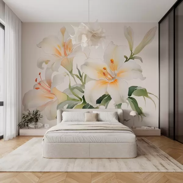 murais de parede Aquarela de imitação de lírios brancos w03460