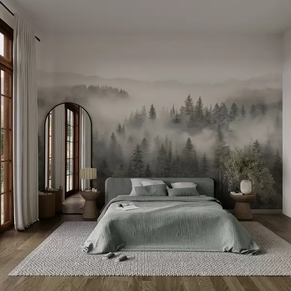 Murais de parede Floresta de coníferas com nevoeiro Nr. w03524