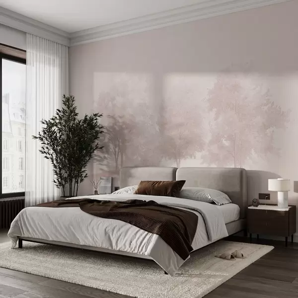 Murais de parede Árvores em flor, primavera, desenho a lápis, cores cor-de-rosa, natureza Nr. w03549