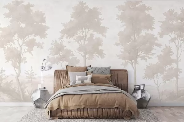 Murais de parede Árvores na colina, desenho em estilo pastel, cores bege, rústico Nr. w03550