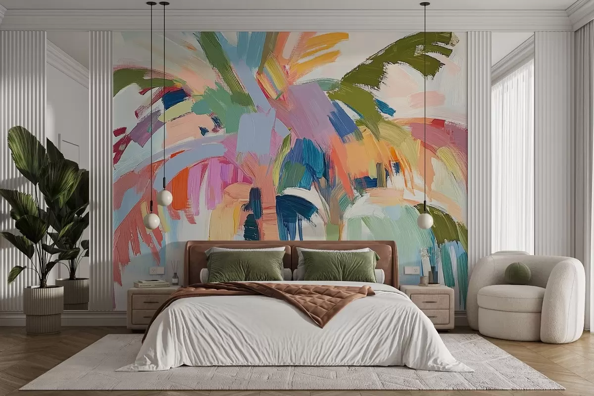 Murais de parede Palmeira colorida abstrata Nr. w03578